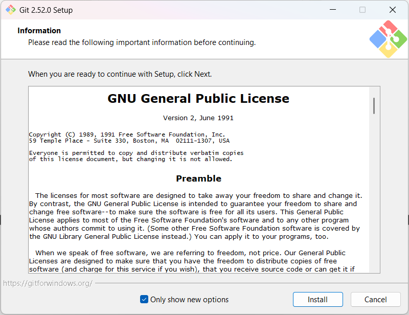 Setelah muncul halaman git-scm nya seperti yang di atas, Langkah selanjutnya adalah kita pilih dan klik Install for Windows, dan kemudian akan muncul halaman seperti berikut ini