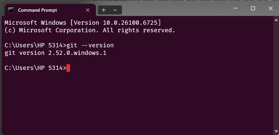 jika git sudah benar benar berhasil terinstall di windows, maka akan muncul versi dari git tersebut seperti gambar berikut :